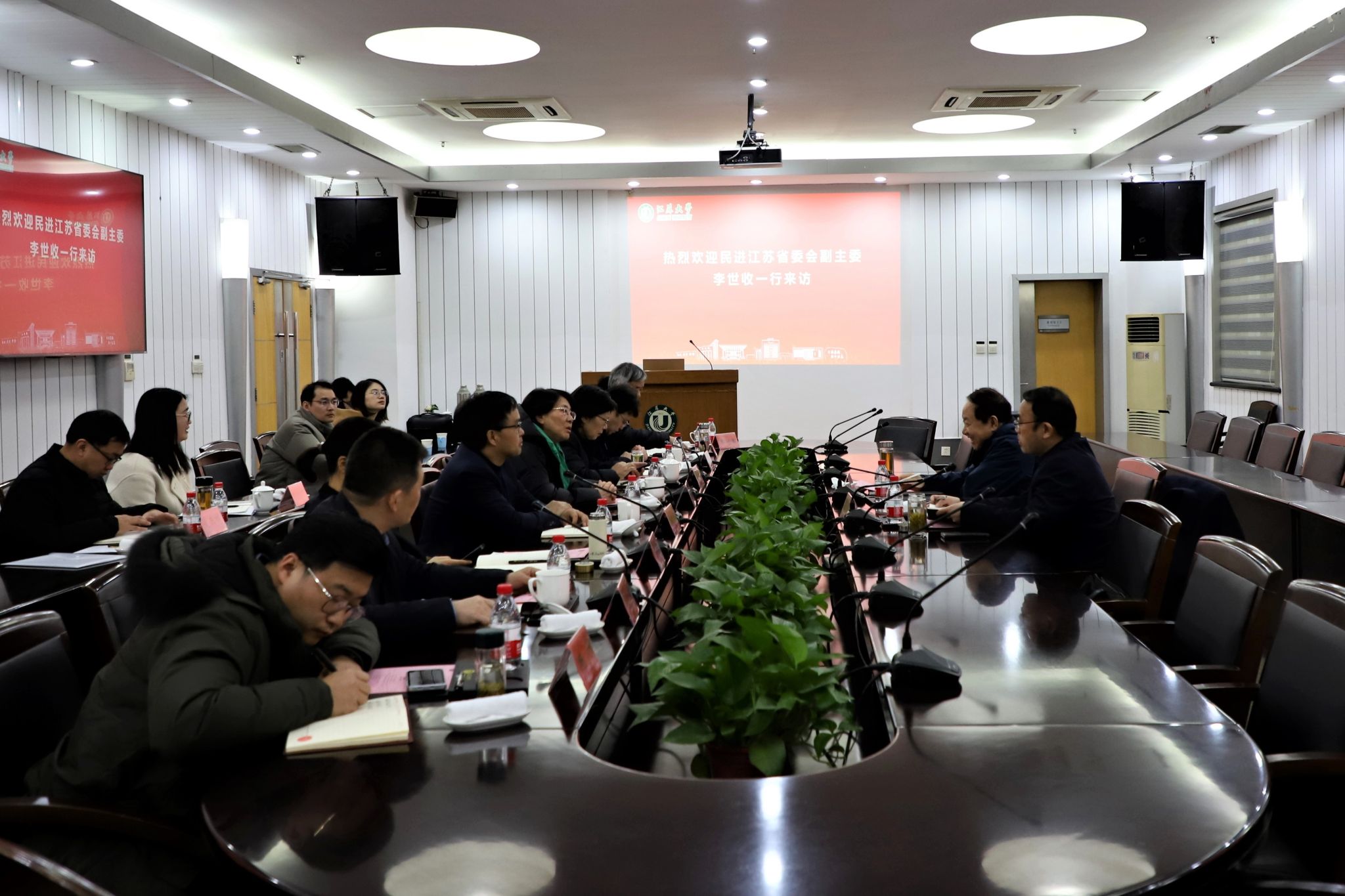 2月27日,民進江蘇省委會副主委李世收、鎮江市政協秘書長張軍一行來校調研,校長邢衛紅,副校長李紅、王景全接待了來訪。