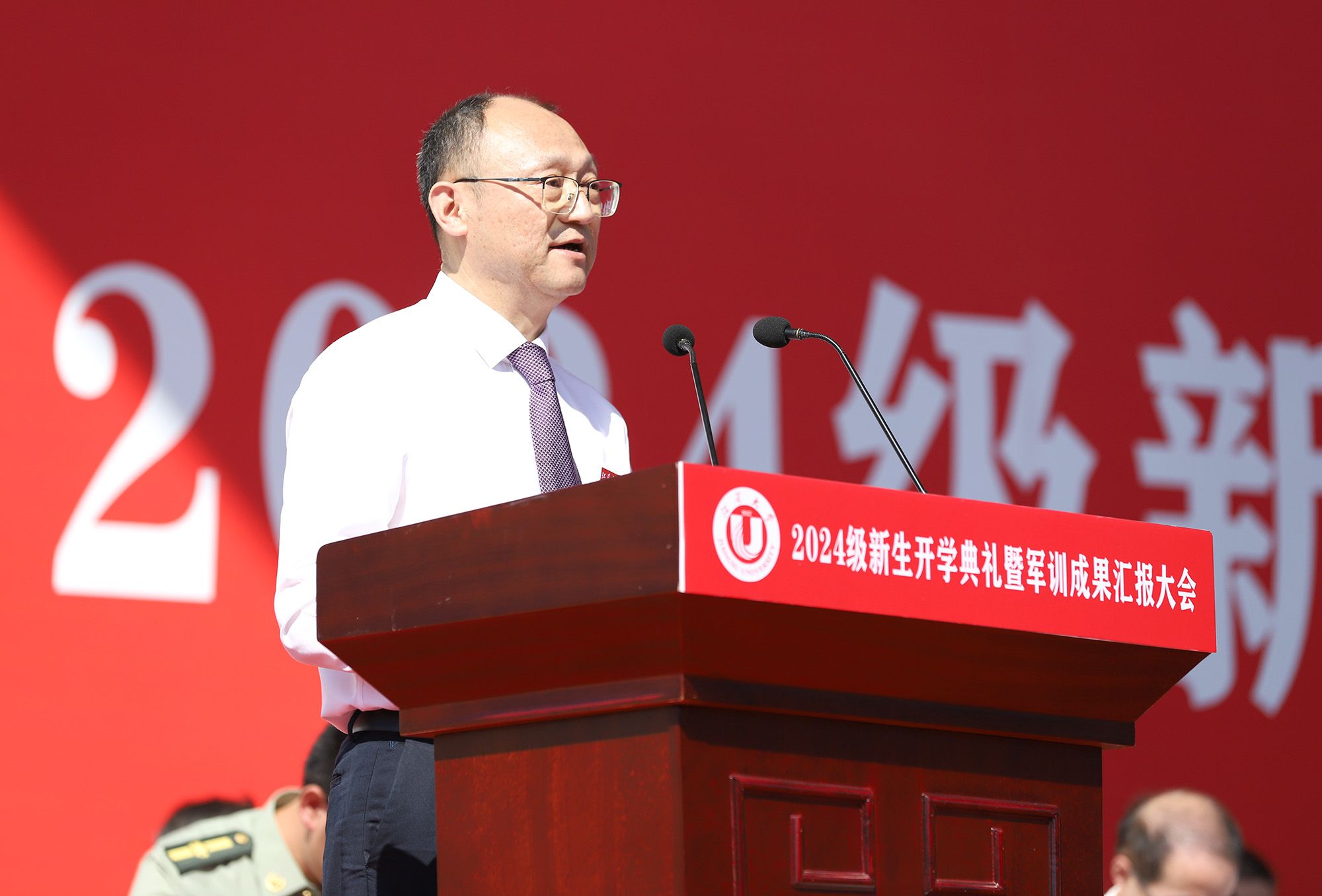 校黨委常委、副校長任旭東在主持典禮時說,嶄新的學習生活已開啟,希望同學們接過時代接力棒,傳承和發揚江大人的光榮傳統,在青春賽道上奮力奔跑、奮勇爭先。
