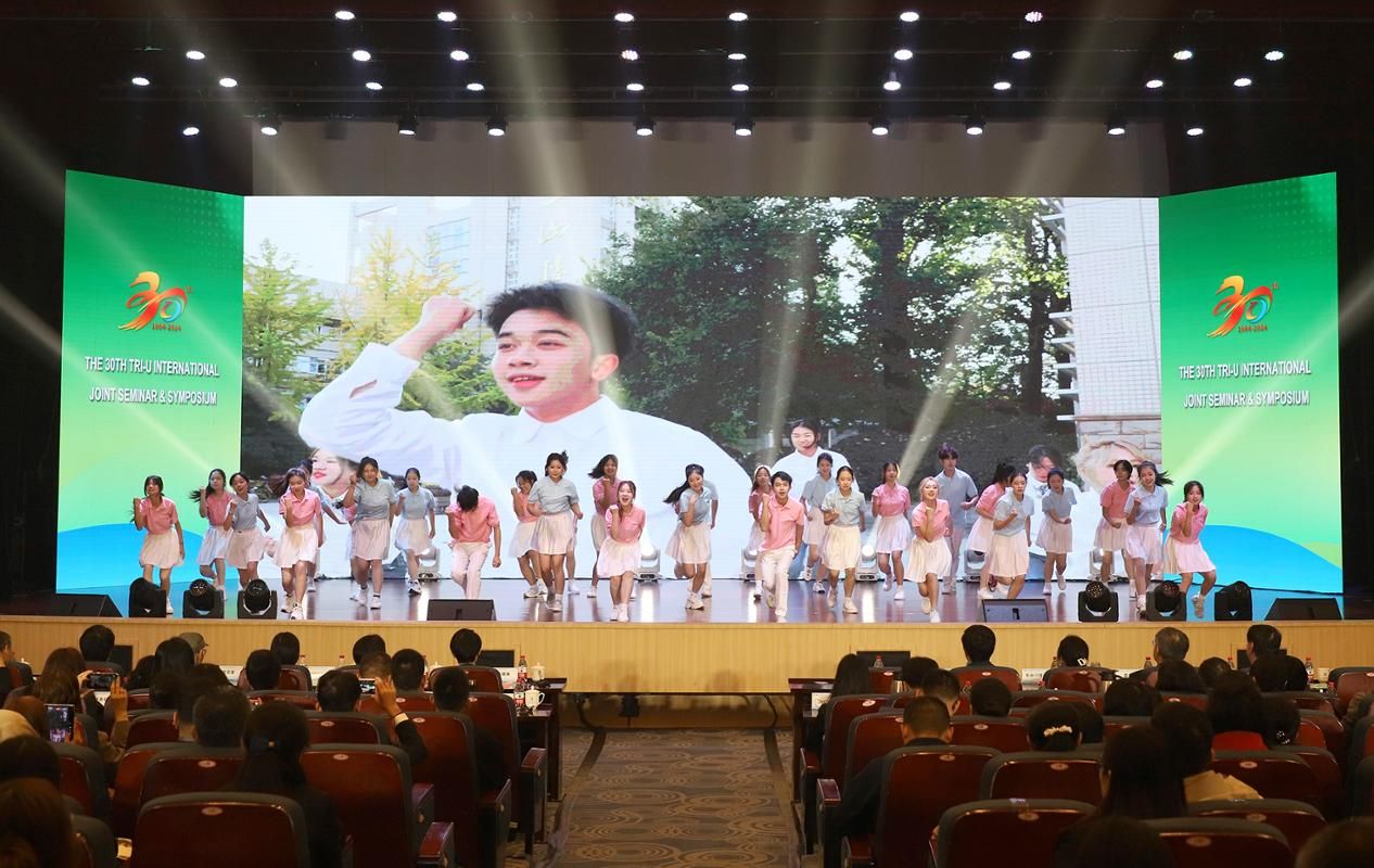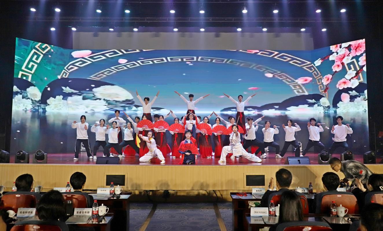 我校青年學生表演了精彩的文藝節目。開幕式上還播放了“三國三校”國際學術研討會30周年紀念短片。