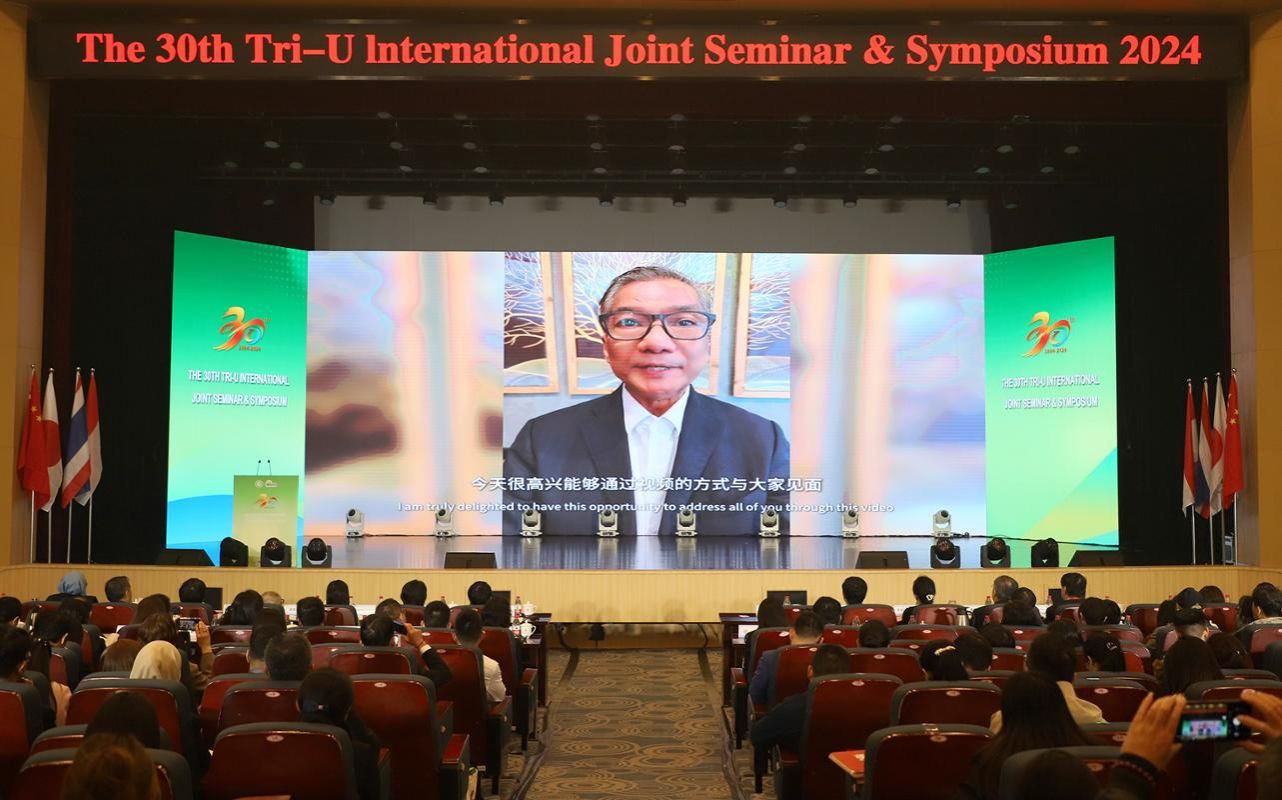 劉利民在視頻致辭中表示,三十年間,“三國三校”國際學術研討會始終秉持開放包容、合作共贏精神,一路攜手并進,走出了一條具有區域特色的教育國際化品牌之路,始終緊跟全球發展脈動,推動跨國學術交流,匯聚了各國的智慧。研討會交流成果不僅為應對全球挑戰提供了理論和實踐支持,也為亞太地區高等教育合作注入了活力,助力亞太地區具有國際視野和責任感的青年相互促進、成長成才。他希望“三國三校”國際學術研討會持續堅守合作共贏的初心、持續架設多國多校間交流的橋梁、持續深入研究和解決人類面臨的共同挑戰,為構建人類命運共同體貢獻更多的智慧和力量。