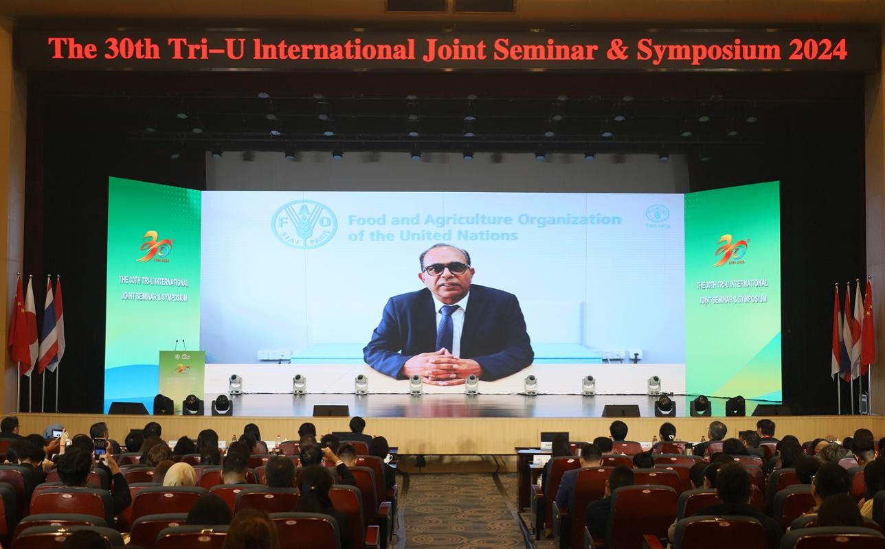 邢衛紅在開幕式上致辭,代表學校對會議召開表示祝賀。邢衛紅說,“三國三校”國際學術研討會發起舉辦三十年來,已發展為覆蓋亞洲10余所高校、近3000人參與的國際盛會,成為促進各國文化交流互鑒、青年人才培養、科技創新合作的重要平臺。邢衛紅指出,面對日益嚴峻的環境問題和資源挑戰,綠色可持續發展成為全球共識。本屆大會圍繞人口增長、食品安全、能源危機、環境退化、人工智能倫理與應用等前沿熱點問題展開研討,對于推動文化交流互鑒、構建人類命運共同體具有十分重要的意義。她期待與會專家學者進一步加強交流合作,面向聯合國2030年可持續發展議程目標,聚焦可持續發展面臨的前沿問題,暢談新觀點、分享新成果,共同探索可持續發展領域融合創新的新路徑、新模式,催生更多高水平合作成果,為推動區域乃至全球文化交流和可持續發展貢獻更多智慧和力量。