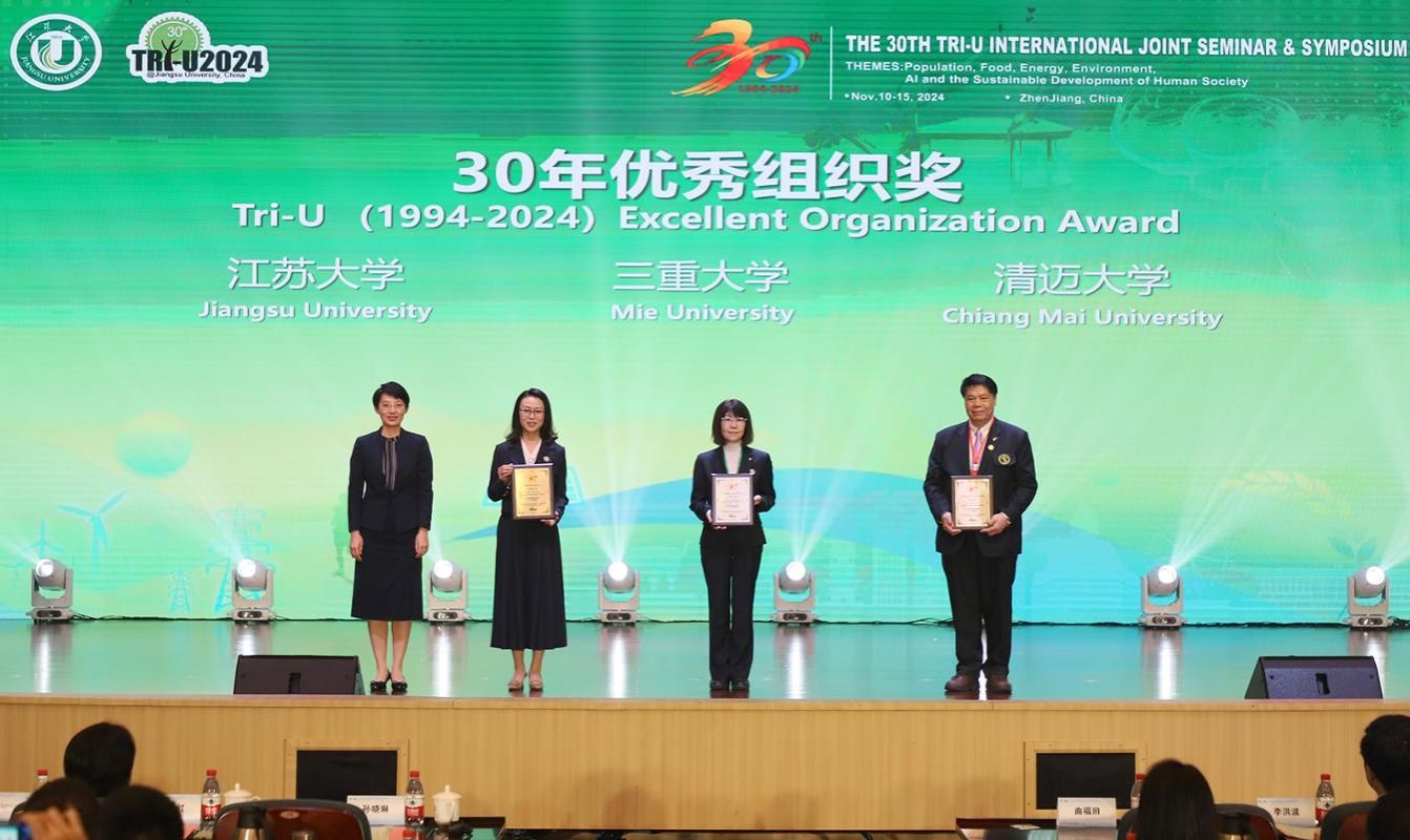 開幕式上舉行了“三國三校”國際學術研討會30周年頒獎典禮。為研討會發展作出杰出貢獻的高校和個人受到表彰。江蘇大學孫建中、廣西大學郭宇路、三重大學Shinichi Shoji、茂物農業大學Ir. Sri Endah Agustina、清邁大學Nat Vorayos獲頒30年發展貢獻獎。江蘇大學袁壽其、三重大學Wang Xiulun、清邁大學Nobutaka Ito獲頒30年杰出貢獻獎。江蘇大學、清邁大學、三重大學獲頒30年優秀組織獎。