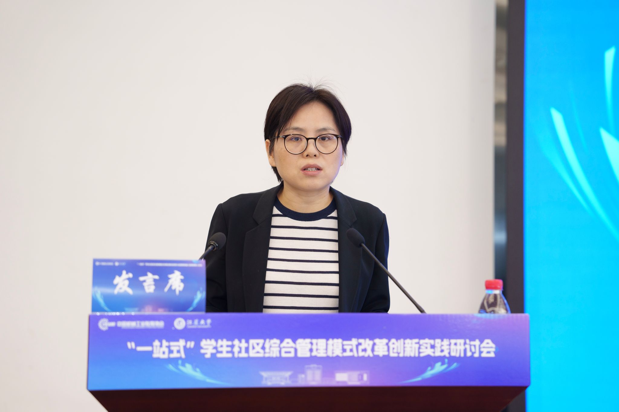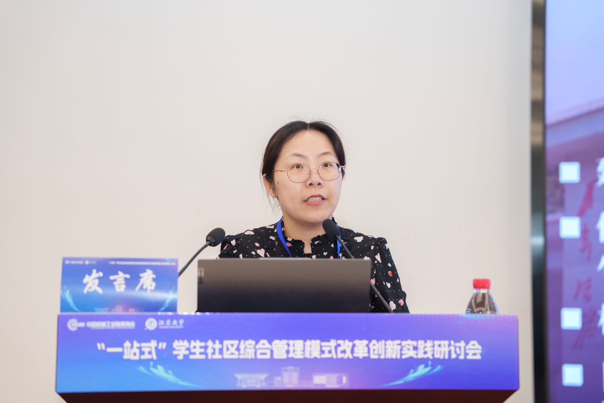 開幕式后,5位知名專家學者圍繞“一站式”學生社區綜合管理模式改革創新分別作主題報告,為推進“一站式”學生社區建設提供了寶貴參考。王慧敏系統闡述了全國高校思想政治工作網工作開展情況和數智賦能學生社區管理的創新應用與實踐路徑。蘇州大學黨委學生工作部部長董召勤立足高校“一站式”學生社區建設實踐,針對共性難題提出了具有可操作性的解決方案。南京大學黨委學生工作部副部長李興華分享了“五個一”建設模式下構建師生成長共同體的創新經驗。江蘇大學黨委學生工作部部長任澤中解讀了“主治·共治·自治·智治”學生社區治理新模式的實踐探索。金智教育研究院學生管理與服務中心主任譚利娟從社區育人視角,分享了高校數據應用建設的典型案例。