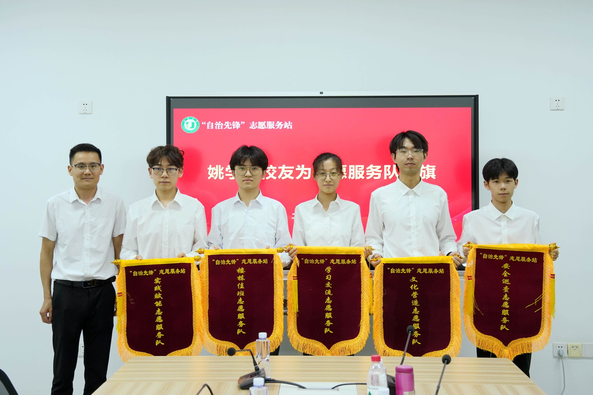 “自治先鋒”志愿服務(wù)站是踐行樓棟自治的重要載體,通過“學(xué)生自我管理+勞模精神”引領(lǐng)模式,打造五支專項(xiàng)志愿服務(wù)隊(duì),為同學(xué)們提供便捷、高效的服務(wù)。姚學(xué)良為五支志愿服務(wù)隊(duì)授旗,并鼓勵志愿者們要發(fā)揚(yáng)奉獻(xiàn)、友愛、互助、進(jìn)步的志愿精神,積極投身于志愿服務(wù)活動中去。