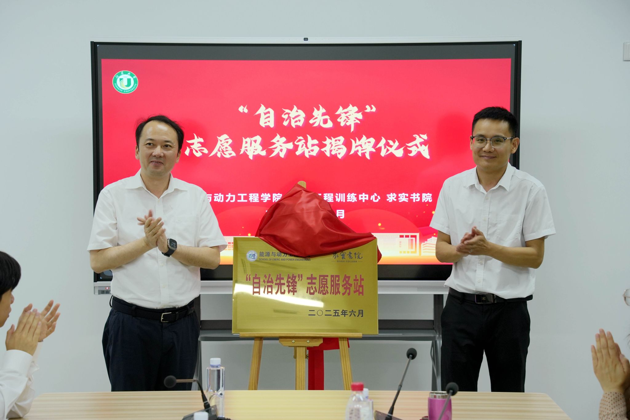 ?6月20日,全國勞動模范、杰出校友姚學(xué)良重返母校與師生交流,校黨委常委、副校長任旭東與姚學(xué)良共同為“自治先鋒”志愿服務(wù)站揭牌。