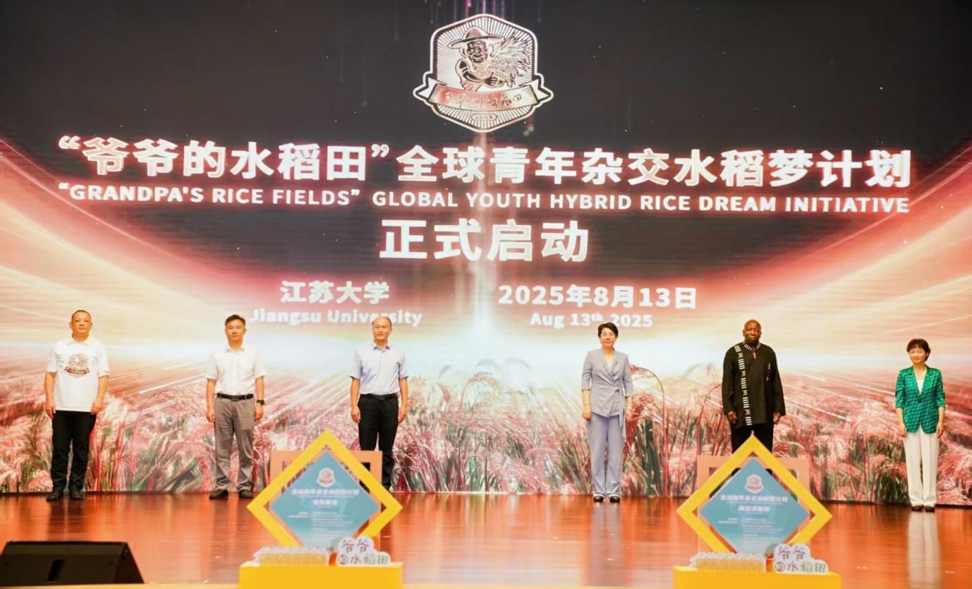 8月13日,由聯合國糧農組織駐華代表處、湖南省袁隆平農業科技獎勵基金會、中國水稻研究所與中國作物學會特用作物專業委員會聯合主辦,江蘇大學承辦,聯合國工業發展組織全球農業現代化與食品教育培訓中心、中國農業國際合作促進會“一帶一路”農業發展辦公室共同協辦的“爺爺的水稻田”全球青年雜交水稻夢計劃啟動儀式在小禮堂舉行。