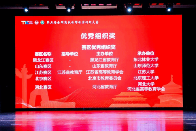 8月19日,由教育部高等教育司指導、中國高等教育學會主辦的第五屆全國高校教師教學創(chuàng)新大賽決賽在北京理工大學落下帷幕。我校教師(團隊)獲一等獎1項(江蘇賽區(qū)獲一等獎8項),蟬聯全國高校教師教學創(chuàng)新大賽桂冠,另獲三等獎1項。由江蘇省教育廳指導、江蘇省高等教育學會主辦、江蘇大學承辦的江蘇賽區(qū)獲賽區(qū)優(yōu)秀組織獎。