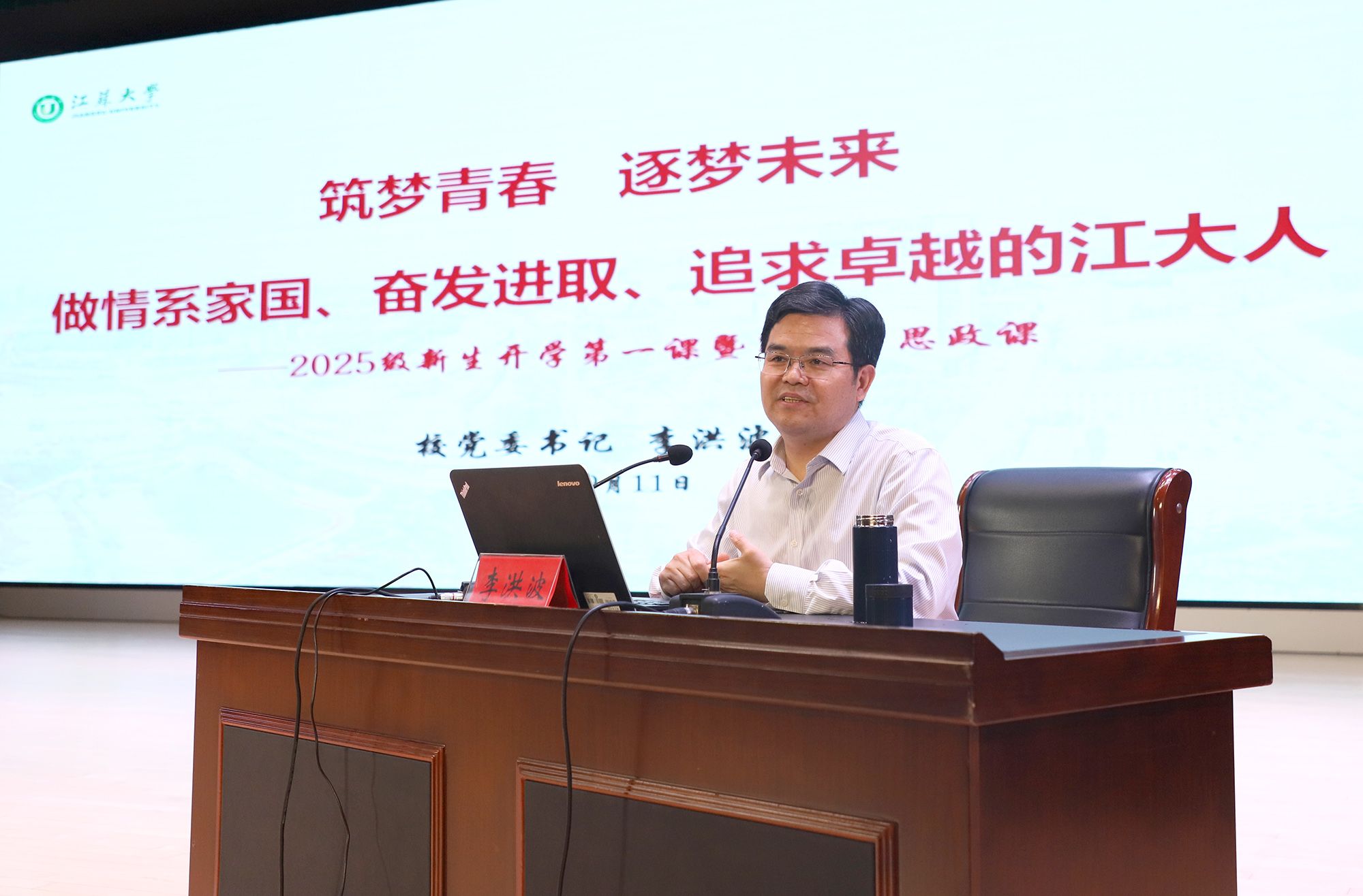9月11日,學(xué)校舉辦2025級新生開學(xué)第一課暨第一堂思政課,校黨委書記李洪波以《筑夢青春 逐夢未來 做情系家國、奮發(fā)進(jìn)取、追求卓越的江大人》為題,為全體新生授課,引導(dǎo)新生將個(gè)人理想融入國家發(fā)展,與學(xué)校共同成長,扣好大學(xué)的“第一粒扣子”。