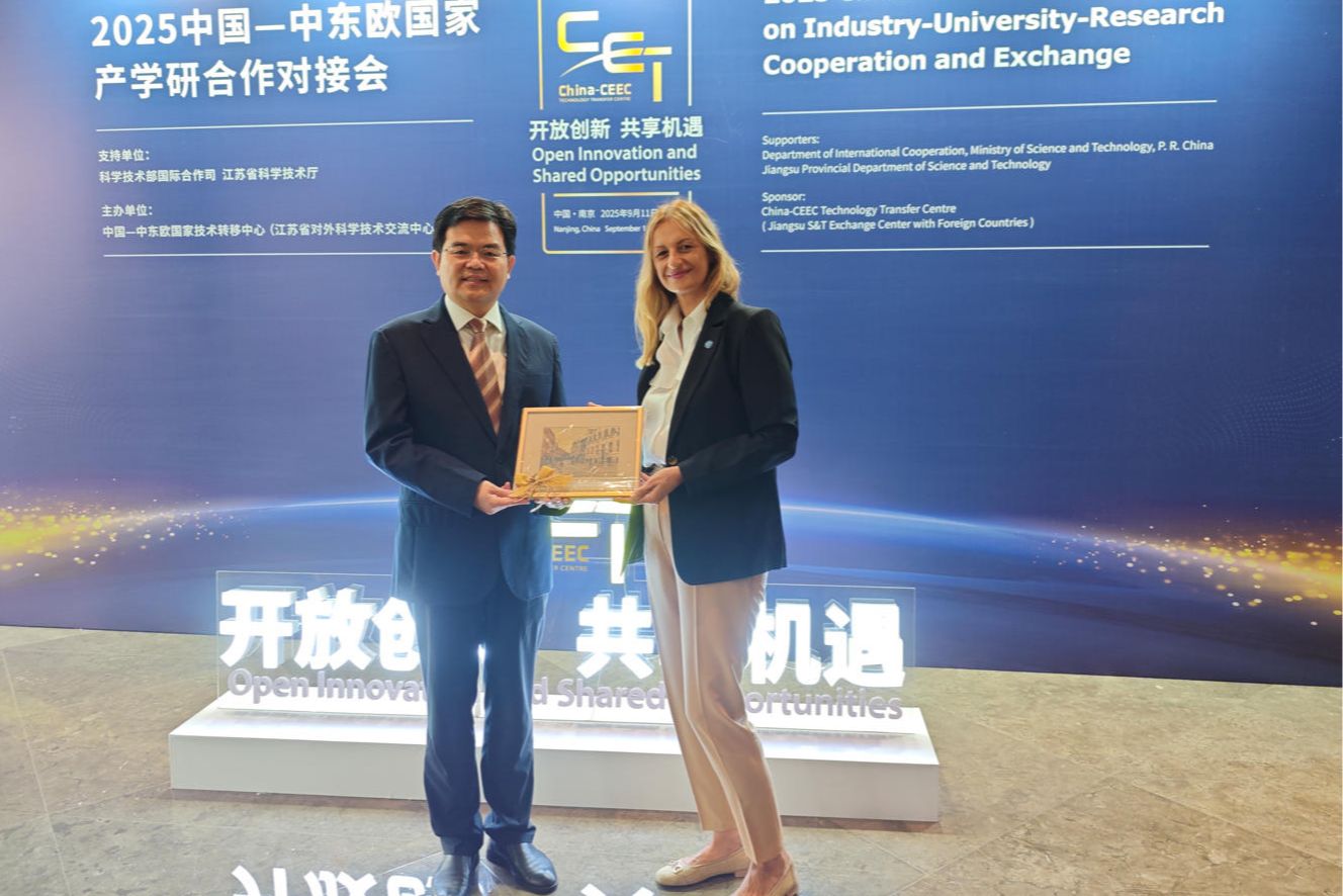 9月12日,由科學技術部國際合作司、江蘇省科學技術廳支持舉辦,中國—中東歐國家技術轉移中心(江蘇省對外科學技術交流中心)主辦的2025中國—中東歐國家產學研合作對接會在南京開幕。江蘇省人民政府副省長趙巖出席開幕式并致辭,我校黨委書記李洪波應邀出席并參加簽約儀式。