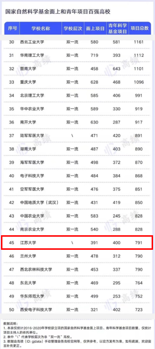 面上項目和一般青年科學基金項目作為國家自科基金的重要組成部分,為資助數量最多的兩個項目。據統計,在2016-2020年高校獲批國家自科基金面上和青年項目的排名中,我校位列全國高校第45位。