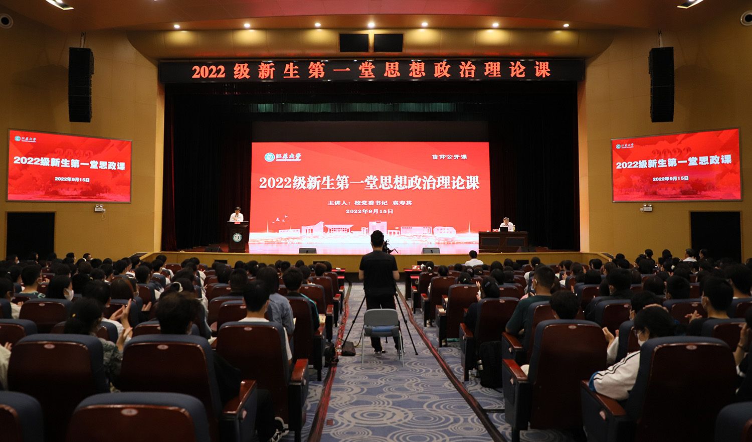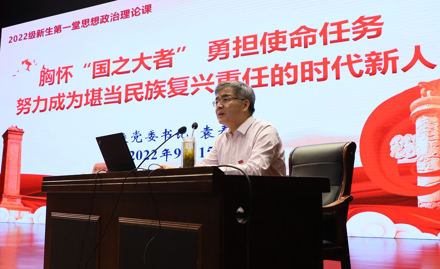 9月15日,校黨委書記袁壽其為全體2022級新生講授“第一堂思想政治理論課”,幫助新生系好人生的第一粒扣子,更好地適應大學生活,將個人理想與實現中國夢、與學校發展結合起來。