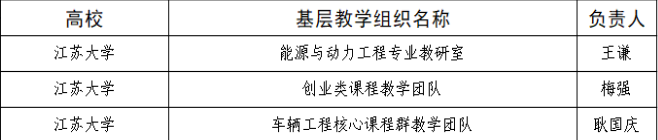 近日,江蘇省教育廳公布了江蘇省高校優(yōu)秀基層教學(xué)組織評(píng)選結(jié)果,我校能源與動(dòng)力工程專業(yè)教研室、創(chuàng)業(yè)類課程教學(xué)團(tuán)隊(duì)、車輛工程核心課程群教學(xué)團(tuán)隊(duì)獲評(píng)“江蘇高校省級(jí)優(yōu)秀基層教學(xué)組織”。