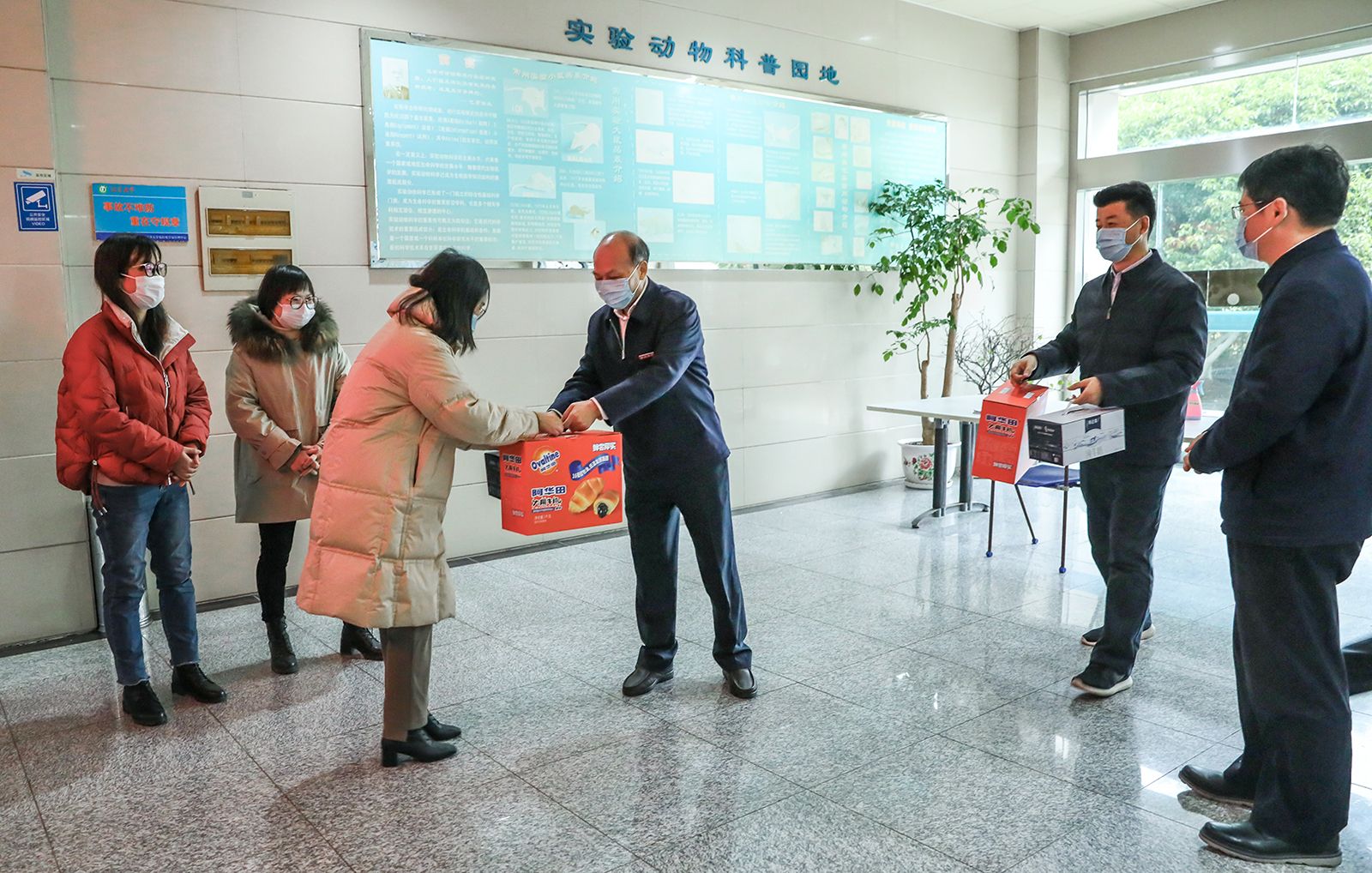 校長顏曉紅、副校長鄒小波一行先后來到學校大門執勤點、實驗動物中心、35kv變電所、一食堂,看望慰問堅守工作崗位的教職工,為他們送去新春祝福。每到一處,校領導都與春節期間堅守在崗的保衛、后勤、實驗工作人員親切交流并送上慰問品,感謝他們的辛勤守護和積極貢獻,感謝大家為校園安寧和師生生活付出的辛勤勞動。