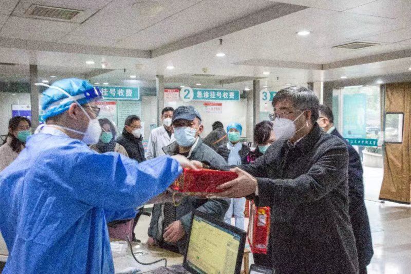 寅虎辭舊歲,卯兔迎新春。1月22日上午,農歷兔年大年初一,校黨委書記袁壽其,校黨委常委、副校長、院黨委書記張濟建,來到附屬醫院看望慰問春節期間堅守在門診一站式服務臺、急診中心、檢驗、藥房等一線崗位的醫務人員,送去新春的問候和真摯的祝福,感謝他們默默無聞的無私奉獻,希望他們注意身體,認真值守,確保春節期間的醫療保障服務安全有序運轉,以實際行動為廣大人民群眾健康保駕護航。