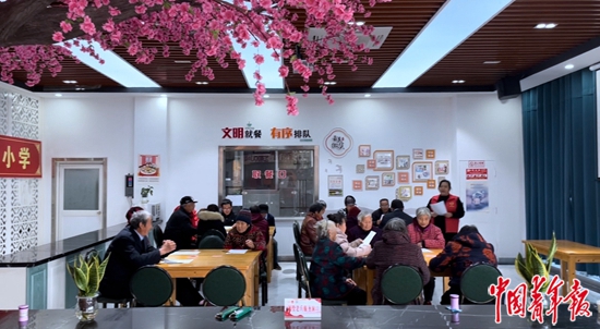 嶂山村“老年小學”成立于2021年3月,學員主要是村里的老黨員、空巢老人。“老年小學”開設的課程包括繪畫、音樂、跳舞、體育、手工制作等,由嶂山村黨員、團員志愿者和共建單位黨員志愿者授課輔導。“老年小學”課時可積分到村里的“時間銀行”換領生活用品,學員也可用閱讀時長來此換領禮品。