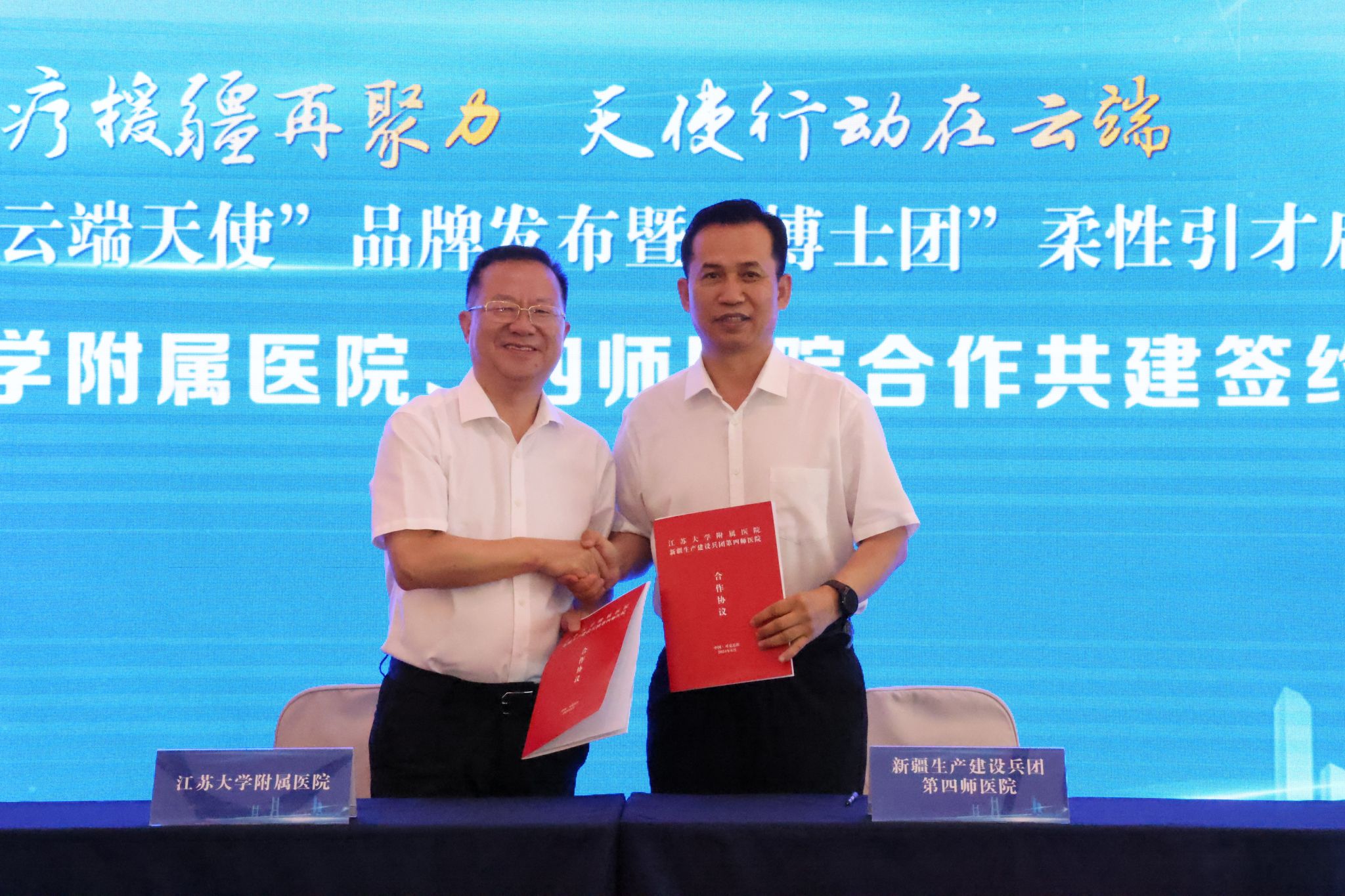 活動現(xiàn)場舉行了“云端天使”援疆醫(yī)療隊(duì)授旗儀式;江蘇大學(xué)附屬醫(yī)院與四師醫(yī)院簽約共建協(xié)議,遠(yuǎn)程醫(yī)療工作站、名醫(yī)工作室揭牌。